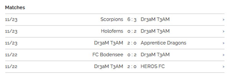 My latest 5 matches play ...